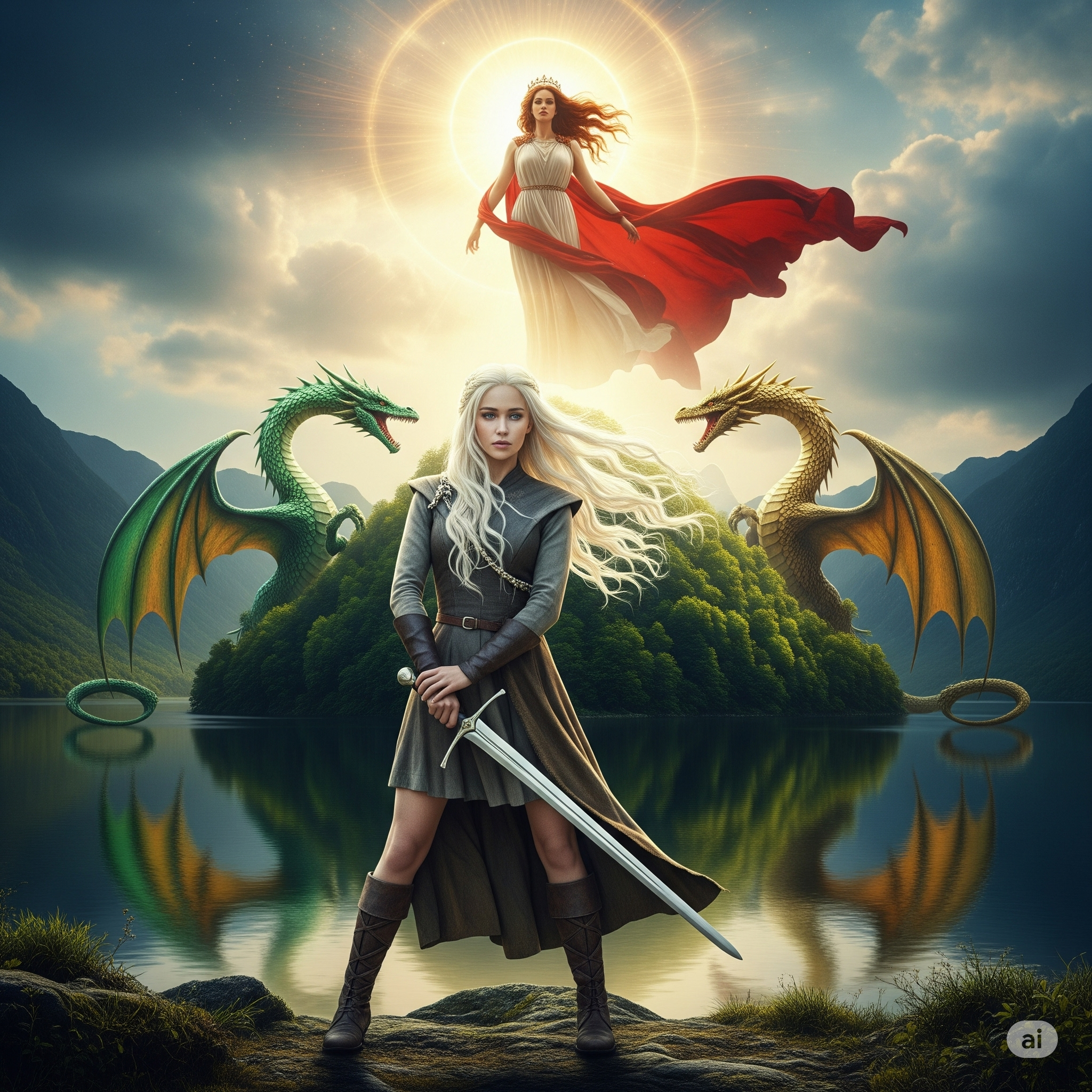 Alina hob ihre zarten Arme, die unter dem schwarzen Schleier zitterten. Zunächst umgab sie dunkles, bedrohliches Licht, das wie schwarzer Nebel wirbelte und sie fast zu verschlingen drohte, doch dann verwandelte es sich in ein strahlendes, reines Grün. Es legte sich wie eine sanfte, heilende Decke aus lebendigem Licht über den Drachen. Das Ungetüm zuckte noch einmal heftig zusammen, seine roten Augen flackerten wild, die pulsierenden Adern an seinen Schuppen verblassten langsam, dann senkte es den Kopf, die Flügel falteten sich zusammen, und es beruhigte sich endlich. Ein tiefer, grollender Seufzer entwich seinem Maul, und die rote Glut in seinen Augen erlosch zu einem schwachen Glimmen.