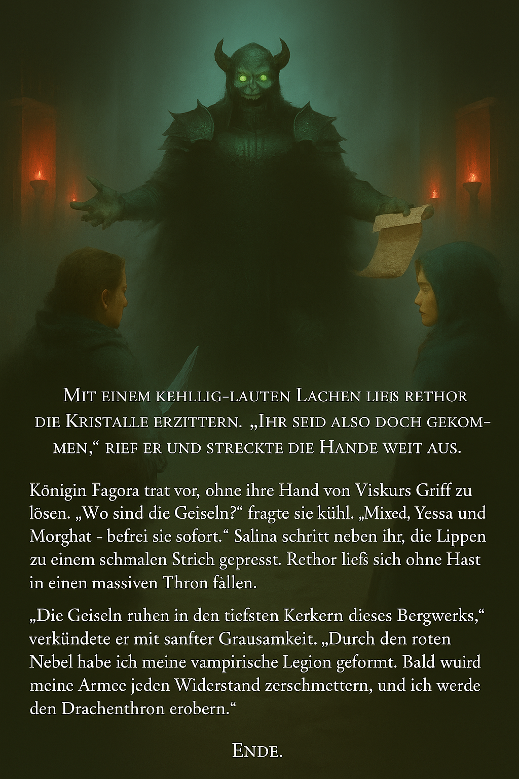 Das ist der aktuelle Kern der Welt von Perna – eine epische Mischung aus Drachenmacht, Familienintrigen, kosmischen Artefakten und dem Kampf um eine neue Ordnung.Welchen Aspekt möchtest du als Nächstes vertiefen, eine neue Episode planen oder ausbauen (z. B. eine Schlacht am Arthrassee, die Rolle der Argonisten neu definieren)? 😊Drachen auf Perna. Aufgabe,Magier, Magieübertragung , Arthrassee Bedeutung, Götter und Göttin, Völker, Burgen, Herrschaft, Mond, Argonisten , Schwerter, Kleidung