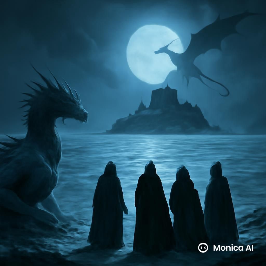 Misstrauisch musterte sie die Insel, wo die Schatten der Wächterdrachen kreisten und deren mächtige Schwingen lautlos den Nebel zerrissen.