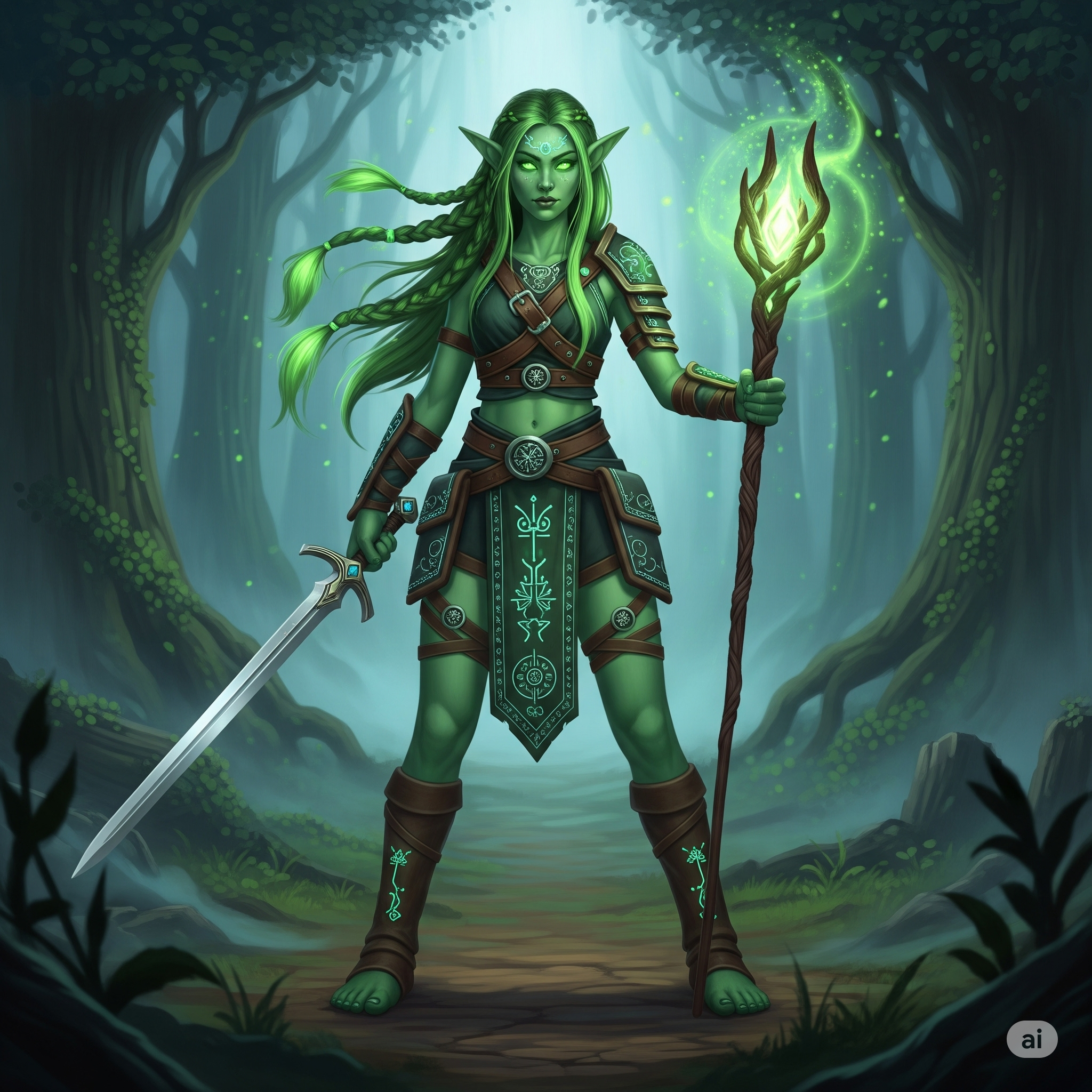 Saradona war inzwischen wieder im Migadwald in der Nähe der Xamibor, der leuchtenden Stadt der Elben, eingetroffen. Der Migadwald war ein uraltes, atmendes Reich der Magie. Die Bäume standen so dicht, dass ihre Kronen ein fast undurchdringliches Dach aus smaragdgrünen, tiefvioletten und silberblauen Blättern bildeten. Viele Stämme waren von innen heraus von feinen, pulsierenden Adern aus reinem Licht durchzogen, die in langsamem Rhythmus heller und dunkler wurden, als würden die Bäume atmen. Das Moos auf dem Boden schimmerte in allen Grüntönen und leuchtete schwach, besonders dort, wo es von den Wurzeln der Magieeiche berührt wurde. Zarte, fast durchsichtige Farne wiegten sich ohne Wind, und zwischen ihnen huschten winzige Lichtkugeln – die sogenannten Waldgeister – in sanften Spiralen umher.