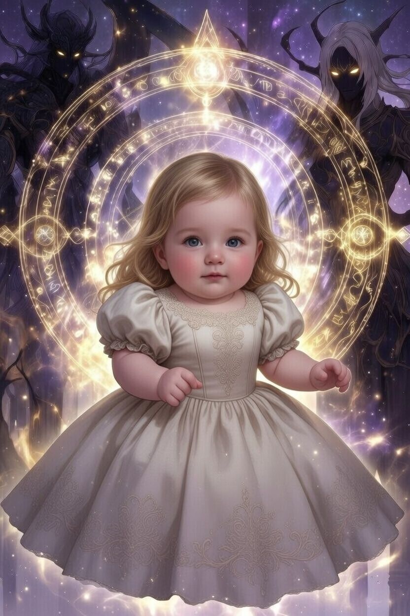 Alinas Augen leuchteten in einem tiefen, unheilvollen Rot – kein kindliches Glänzen, sondern ein glühendes, inneres Feuer, das in Wellen pulsierte, als atme etwas Uraltes, Hungriges in ihr. Sie schaute ihre Eltern an, lächelte unschuldig, die kleinen Zähne blitzten weiß.