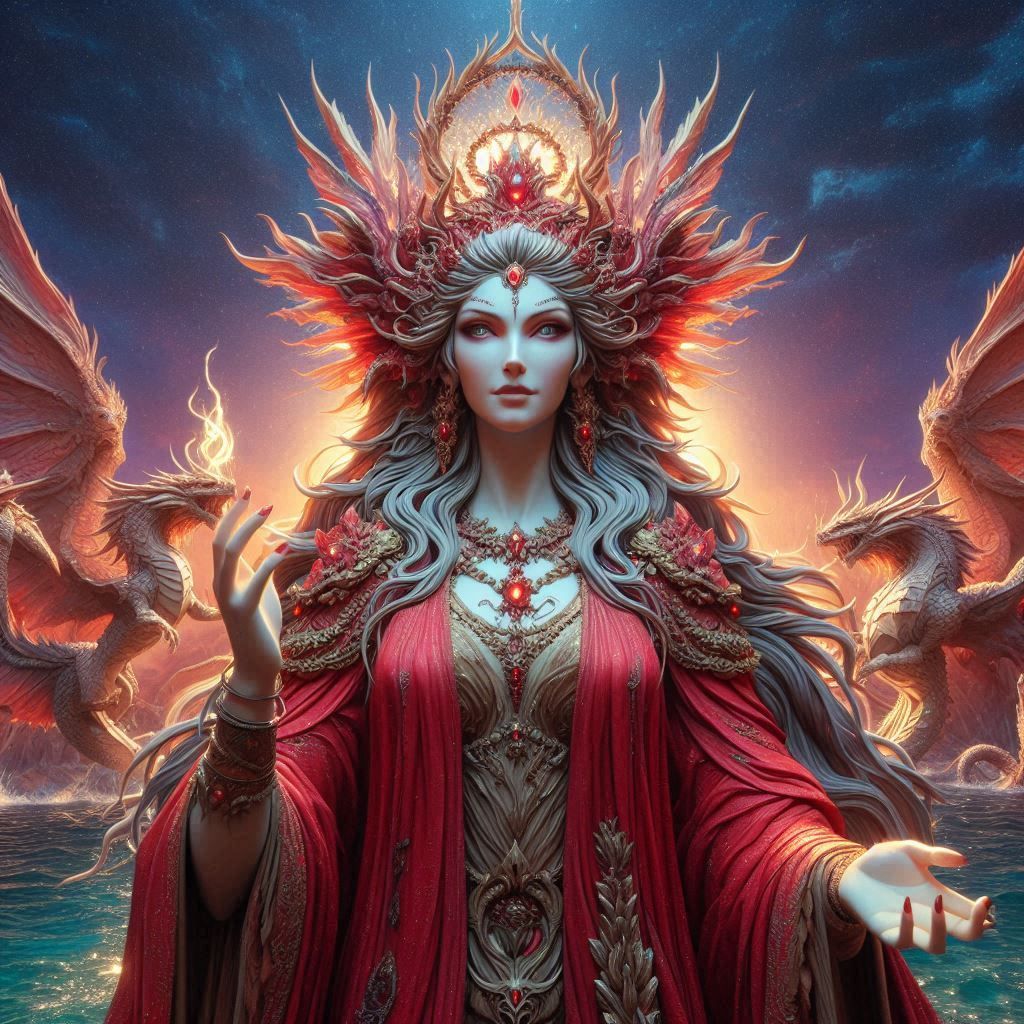 Fagora steht am Altar, ihre Hände noch leicht zitternd. Die Farben in ihrer Haut verblassen, ihr Körper formt sich zurück in die gewohnte Gestalt. Saradona steht neben ihr, überwältigt.