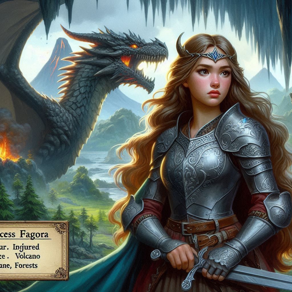 17 Jahre jung und die Tochter von König Horo Adamus. Der Drache Lutar, aber auch früher Viskur, tyrannisierte die Bevölkerung und die adeligen Drachen.