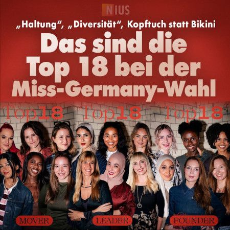 Oder hier die Top 18 der aktuellen Miss Germany Wahl. Sind das wirklich die 18 Frauen, die Deutschland am treffendsten repräsentieren, und nicht eher die politische Wunschvorstellung einer extremistischen Minderheit?
