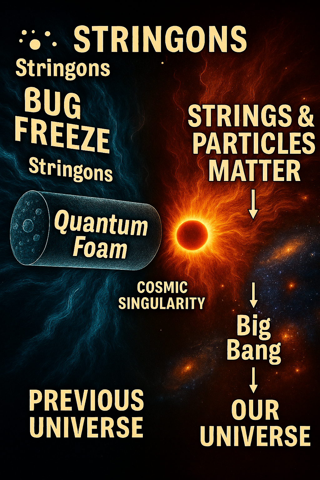 Deine Idee impliziert, dass es eine Art "Metamorphose" des Universums gibt, bei der die Stringonen eine Schlüsselrolle spielen. Sie wären dann nicht nur Überreste des Alten, sondern tatsächlich der Katalysator für die Entstehung des Neuen.