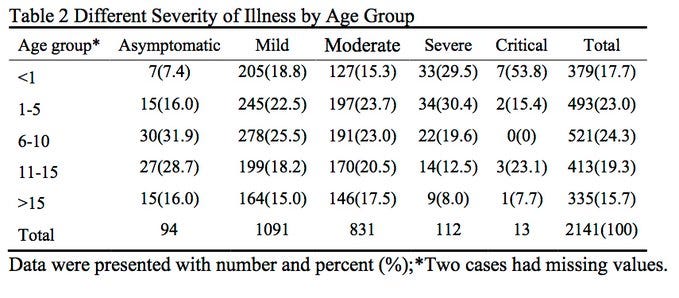 In Wuhan, China, entwickelte ein sehr kleiner Anteil der unter 19-Jährigen eine schwere (2,5%) oder kritische Krankheit (0,2%), wie eine frühe Studie zeigt.
